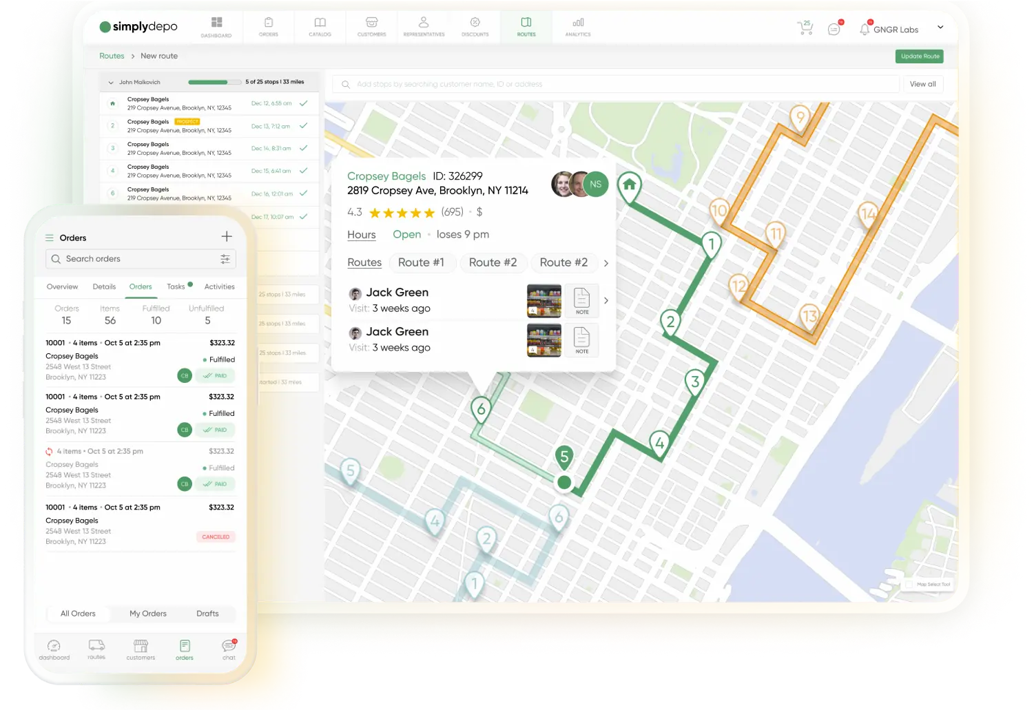 Yes, the SimplyDepo route management system supports both order management and account management functionality.